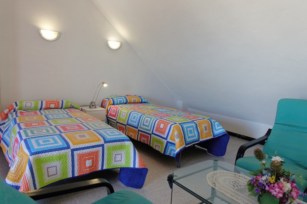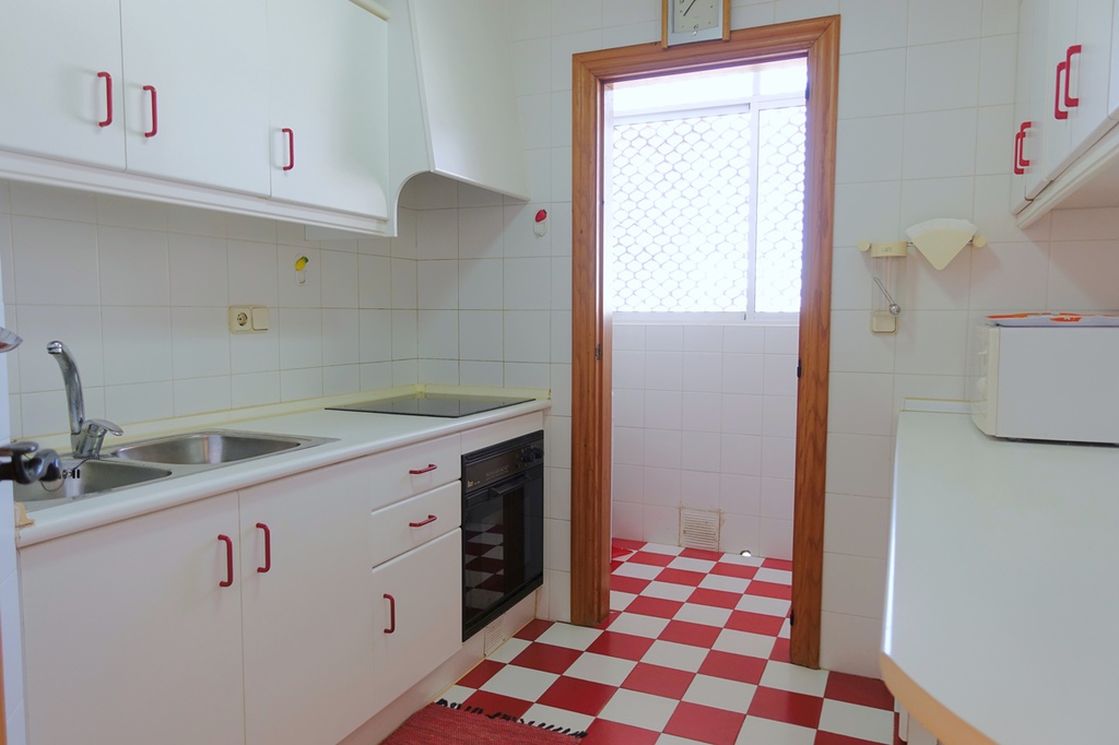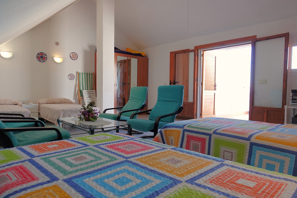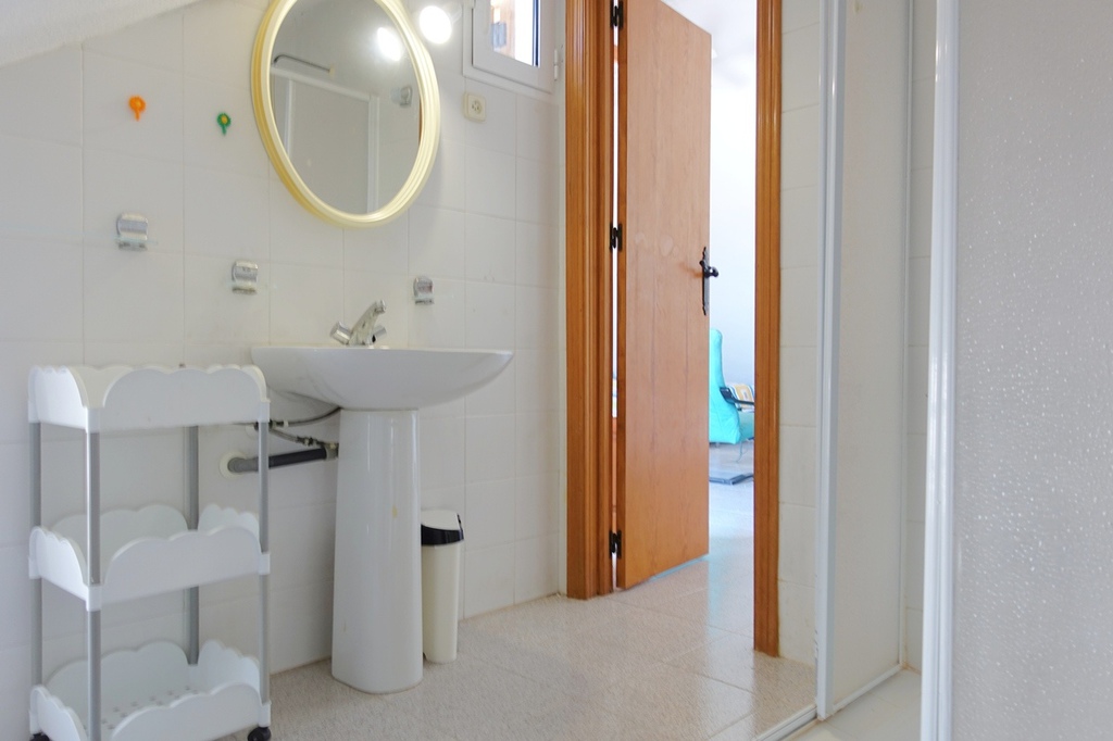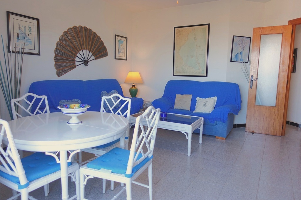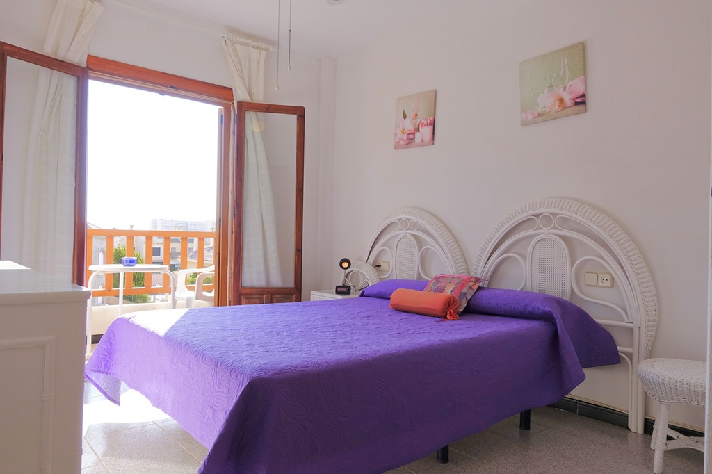 En este conjunto disponemos de un piso de 3 dormitorios tipo dúplex. En la planta principal se encuentra la cocina, 2 dormitorios dobles-uno de ellos con un bonito balconcito-, un cuarto de baño, un aseo y el salón comedor. La terraza de esta planta, a la que se accede desde el salón, tiene una escalera que accede a la otra planta del inmueble, con una gran terraza-solarium y con acceso a un gran dormitorio con 4 camas y zona de estar, que incluye también un cuarto de baño. También incluye cochera y la urbanización cuenta con piscina* comunitaria. Está amueblado y habilitado con toda la ropa de cama, toallas de baño y lavabo, así como menaje según capacidad.