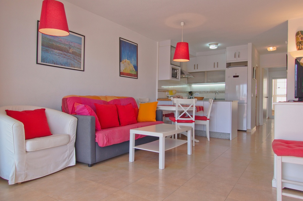 Todos los apartamentos tienen salón comedor con sofá nido o cama extraíble, cocina con barra americana, baño completo y 1 o 2 terrazas, dependiendo de cada bloque. Están amueblados y habilitados con toda la ropa de cama, toallas de baño y lavabo, así como menaje según capacidad.