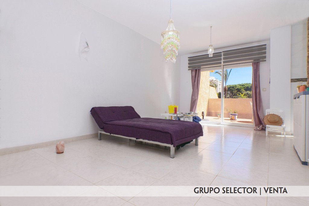 Esta vivienda cuenta con una zona de entrada que distribuye al dormitorio, cuarto de baño completo y salón comedor. Desde el dormitorio, que cuenta con armario empotrado doble, se accede también a un balcón, y desde el salón comedor, así como desde el área de cocina, también se accede a una gran terraza delantera de unos 20 m2 y que tiene salida directa a la propia urbanización. La distribución de esta vivienda hace posible que disfrute de una ventilación cruzada y gran luminosidad.