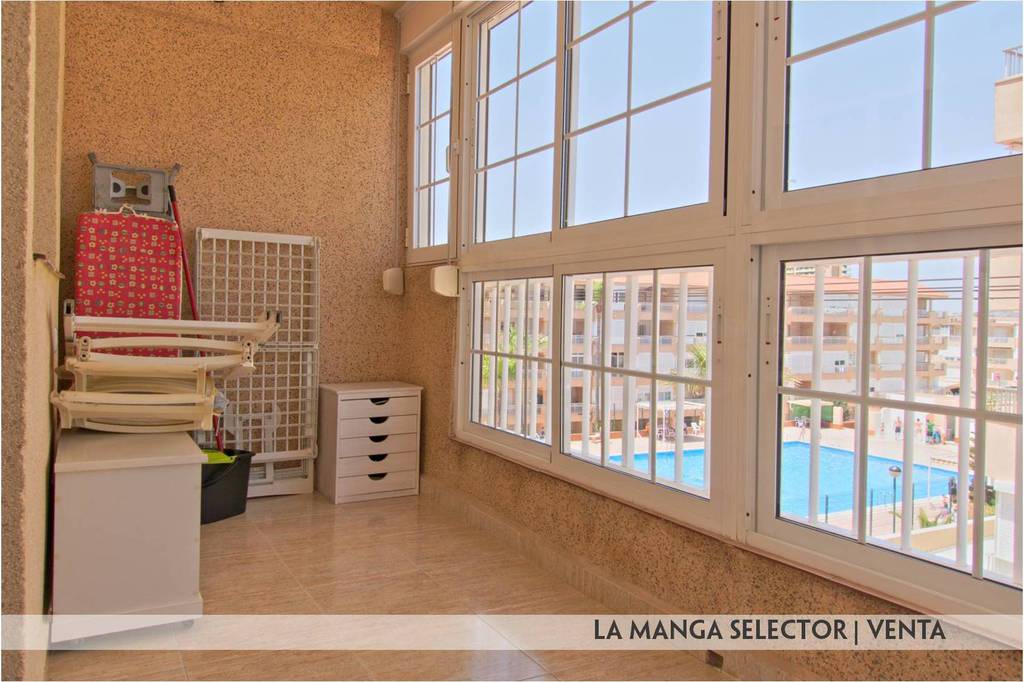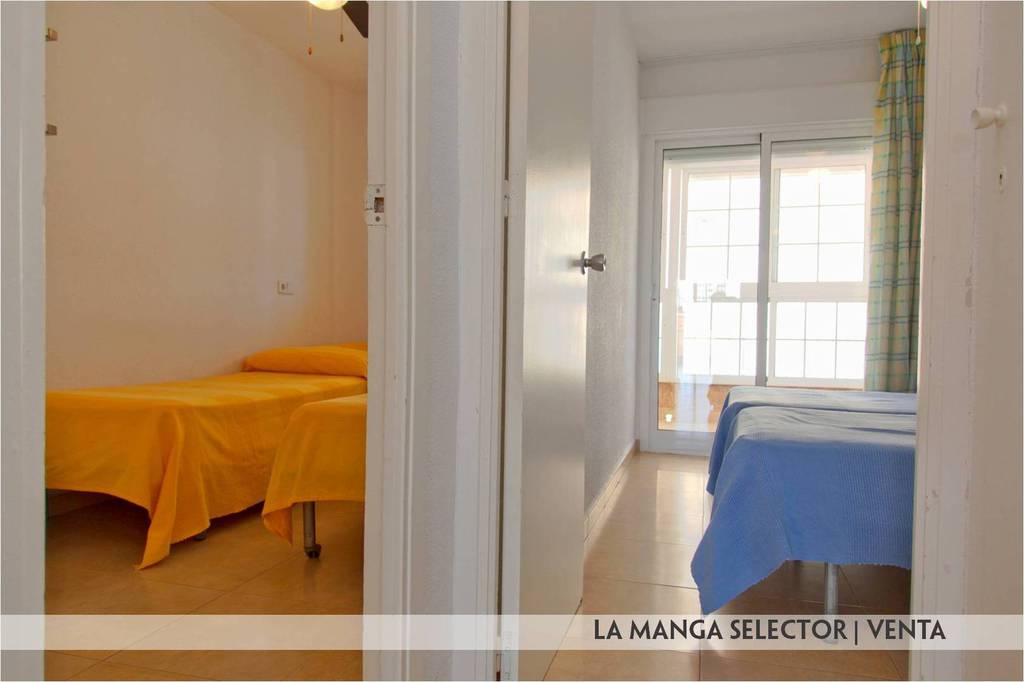 3ª planta en Nuevo Puerto Bello, urbanización muy conocida por su situación y proximidad a la entrada de La Manga, ubicada en el Km. 2 de La Manga, teniendo a 100 metros el Mar Mediterráneo y a 150 metros el Mar Menor, playas con excelentes zonas de baño. La oferta de servicios en sus inmediaciones hace que este piso se ideal tanto para disfrutar en vacaciones como para vivir todo el año. La Urbanización tiene una gran piscina y zonas para barbacoa, áreas deportivas e infantiles y zonas verdes.