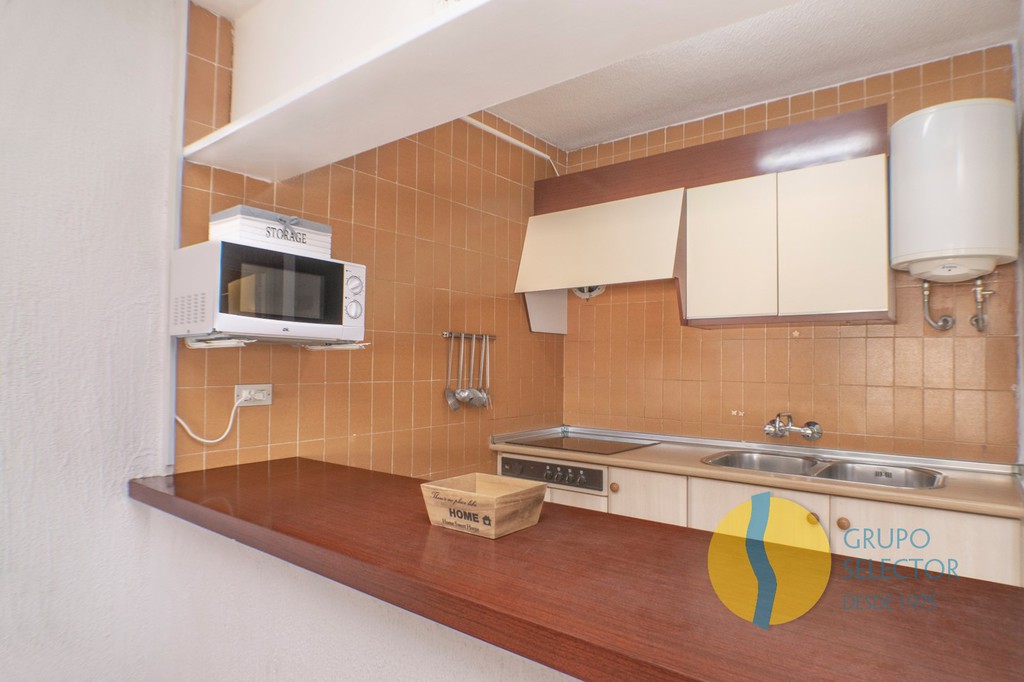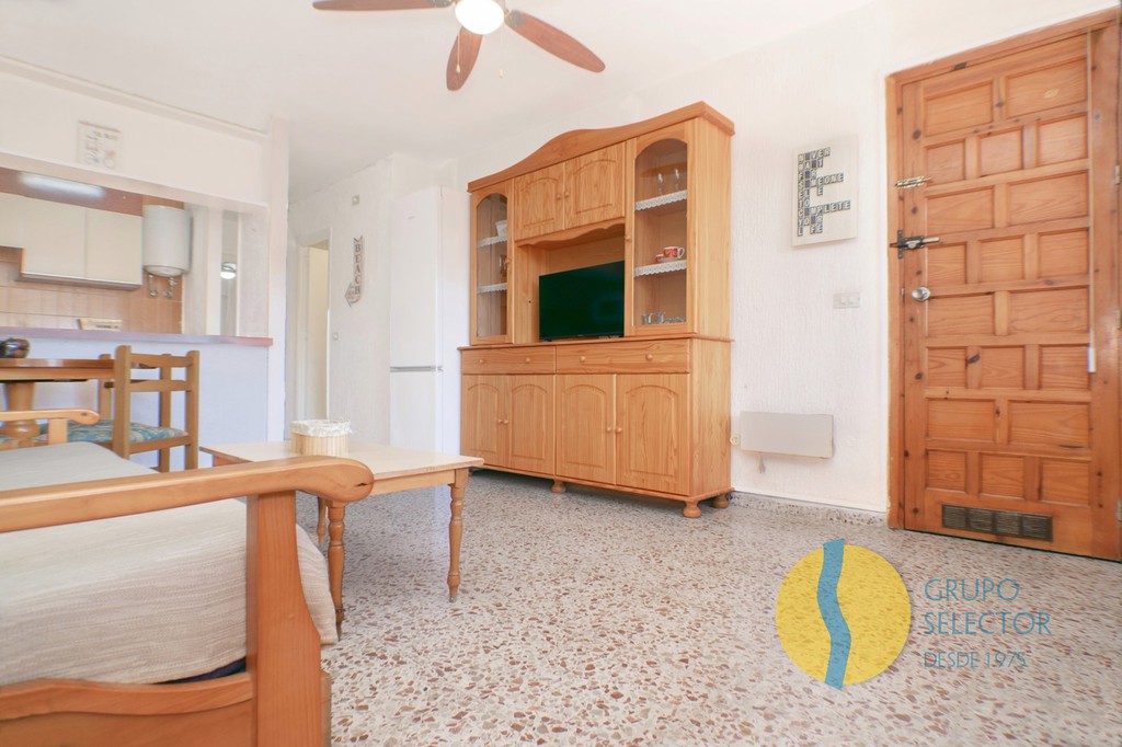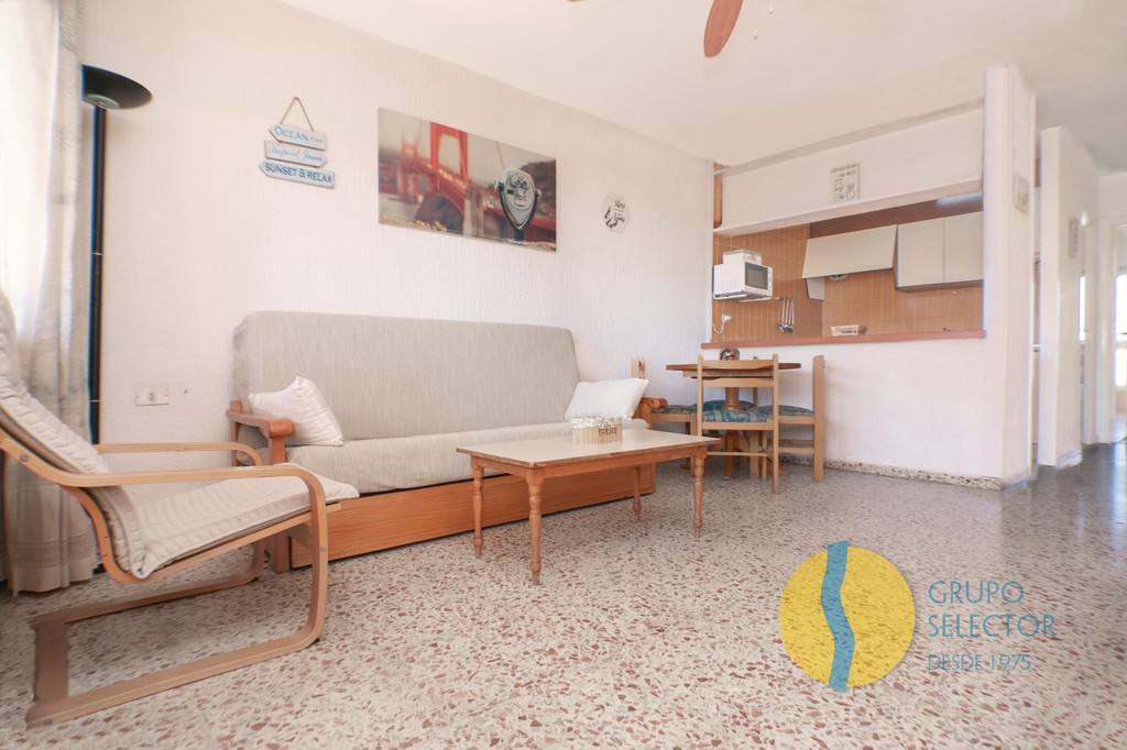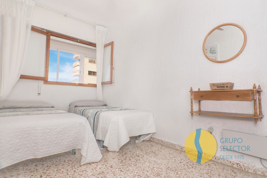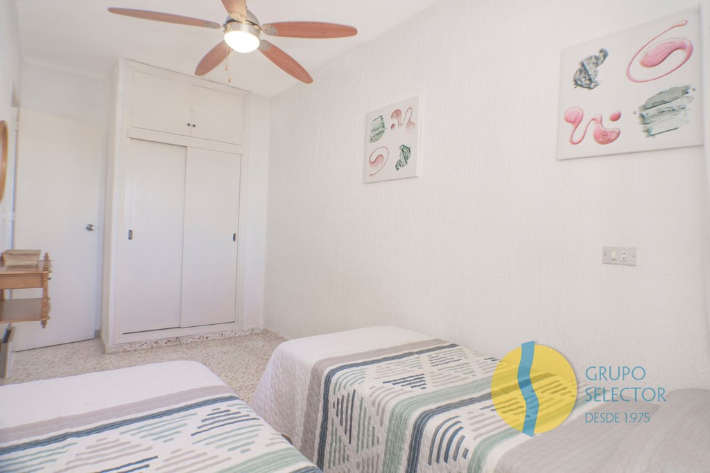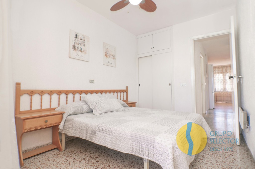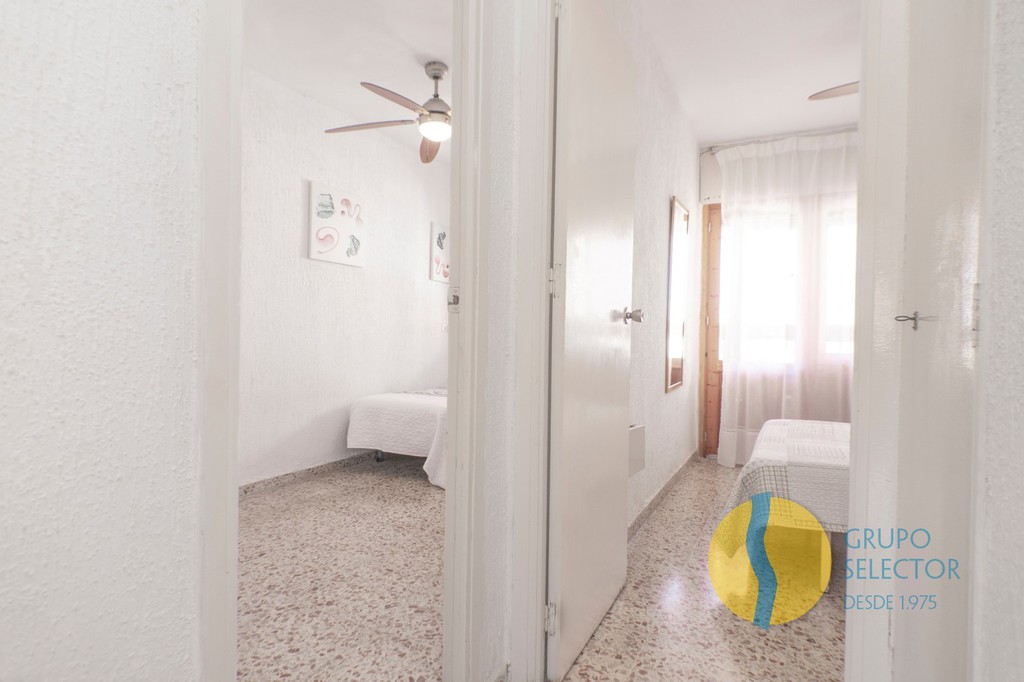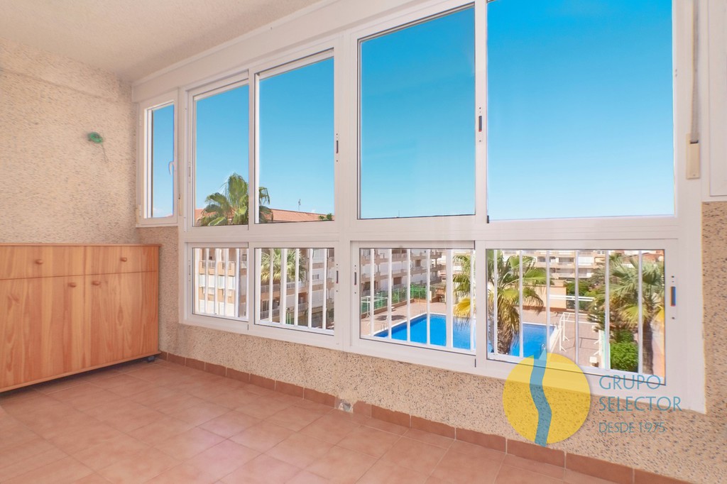 Esta vivienda se compone de 2 dormitorios, cuarto de baño, salón comedor, cocina con barra americana y 2 terraza con bonitas vistas. Su disposición hace que toda la vivienda disponga de ventilación cruzada. Se encuentra en un residencial con piscina comunitaria, así como zonas comunes de juegos, deportivas y para barbacoa.