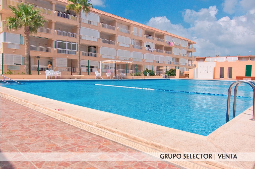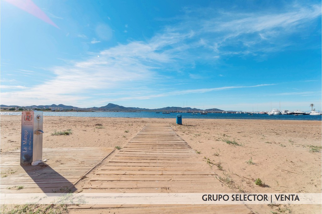 Planta baja en Nuevo Puerto Bello, Km. 2 de La Manga, muy próximo a la entrada, a escasos metros de las playas del Mediterráneo y de Mar Menor. En su entorno dispone de todo tipo de servicios, restaurantes, cafeterías, supermercados, panaderías, farmacia, etc. Piscina comunitaria.
