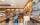 El interior se encuentra distribuido en 12 m de barra, zona de cocina, zona de despensa, zona de máquinas de azar, cuartos de baño y resto de superficie habilitada para mesas.